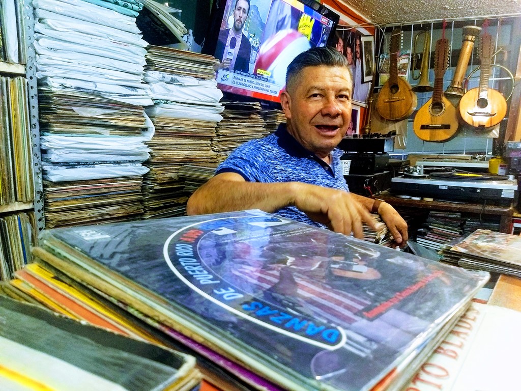 Moré, custodio de su bodega de miles de discos, en pleno centro de Bogotá,